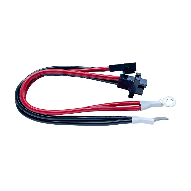 This high-performance wiring harness is designed for power output applications in charging piles, control power supplies, and home energy storage systems.It features precision-built high-voltage conductors for stable energy delivery under continuous DC operation. Built with UL10269 8AWG red-black wire, each end is fitted with high-quality terminals—HRS: DF60-2EP-10.16C on one side and RNTS22-5 cold-press terminals on the other.